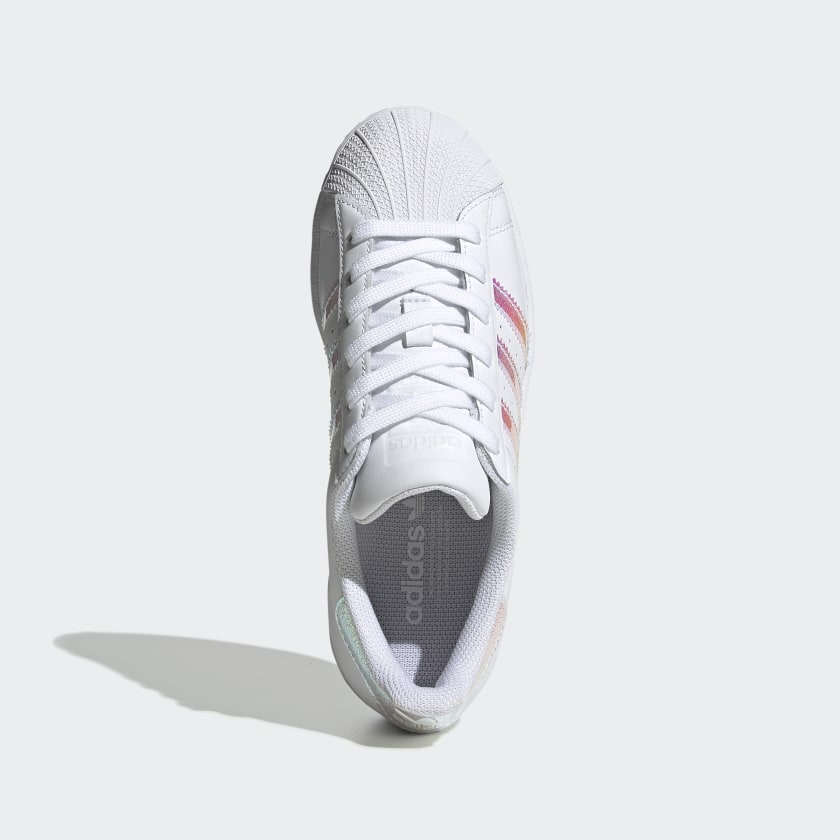 ADIDAS SUPERSTAR SHOES WITH SHINY IRIDESCENT DETAILS.